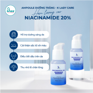 Tinh chất Niacinamide 20% K Lady Care là sản phẩm chăm sóc da cao cấp, giúp thu nhỏ lỗ chân lông, làm đều màu da và mang lại làn da mịn màng, tươi trẻ. Với công thức chứa 20% Niacinamide, sản phẩm này giúp cải thiện các vấn đề về da hiệu quả, mang lại làn da khỏe mạnh và rạng rỡ.